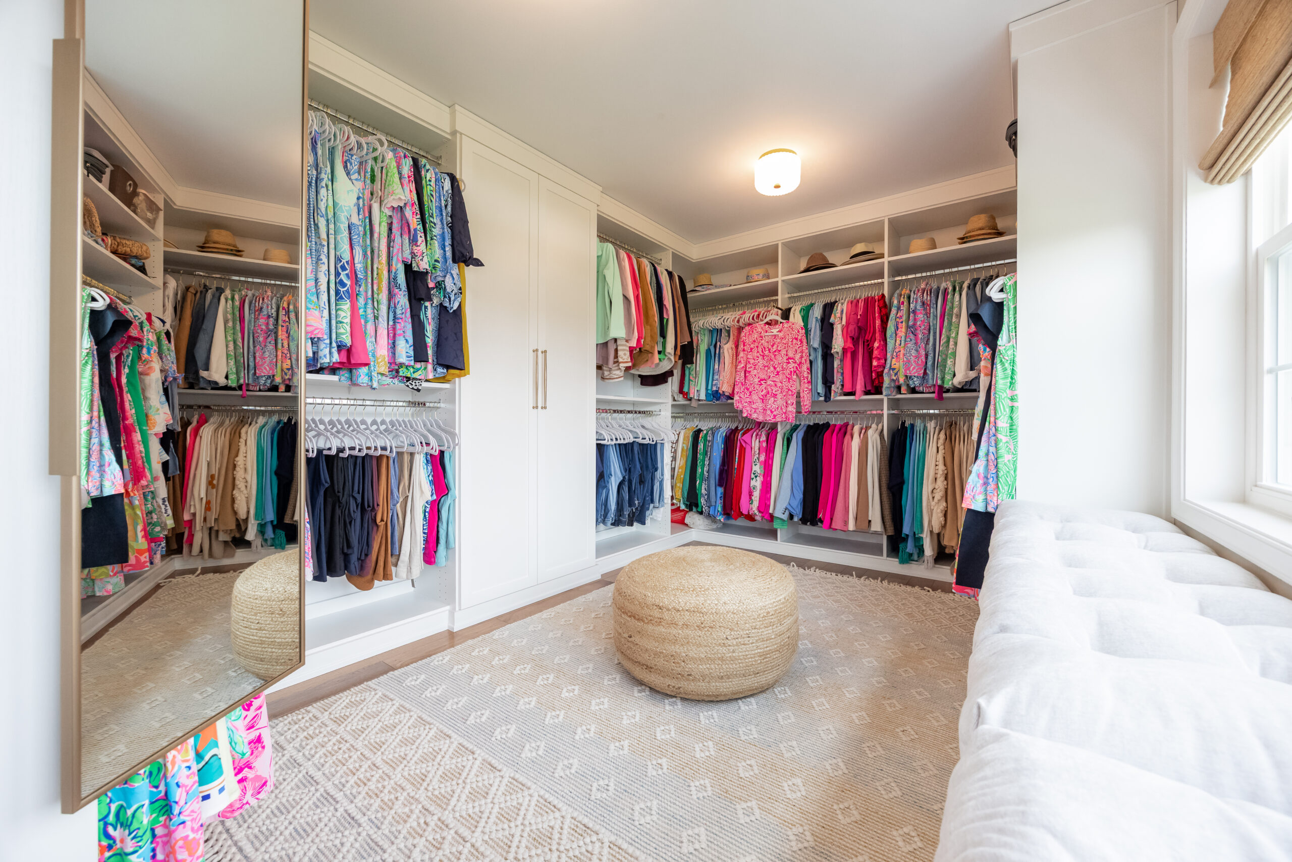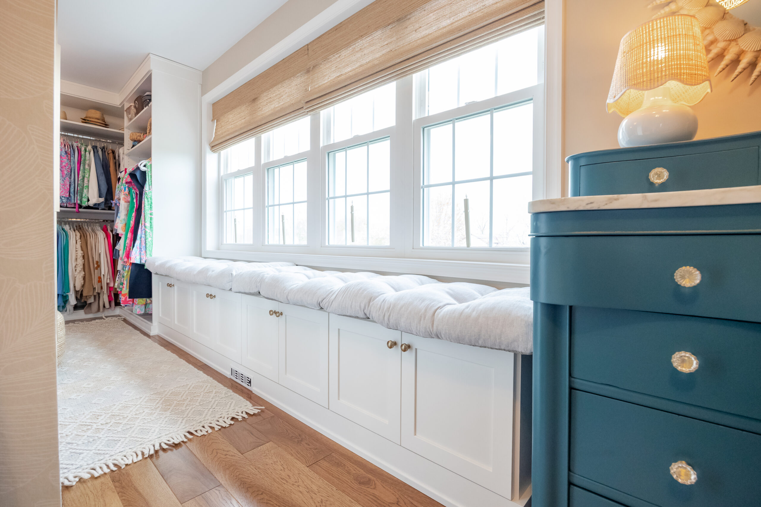 Our clients were ready to transform their primary suite into a more functional, modern space. This project centered around expanding their walk-in closet—with a pop-top addition—and adding custom storage solutions.