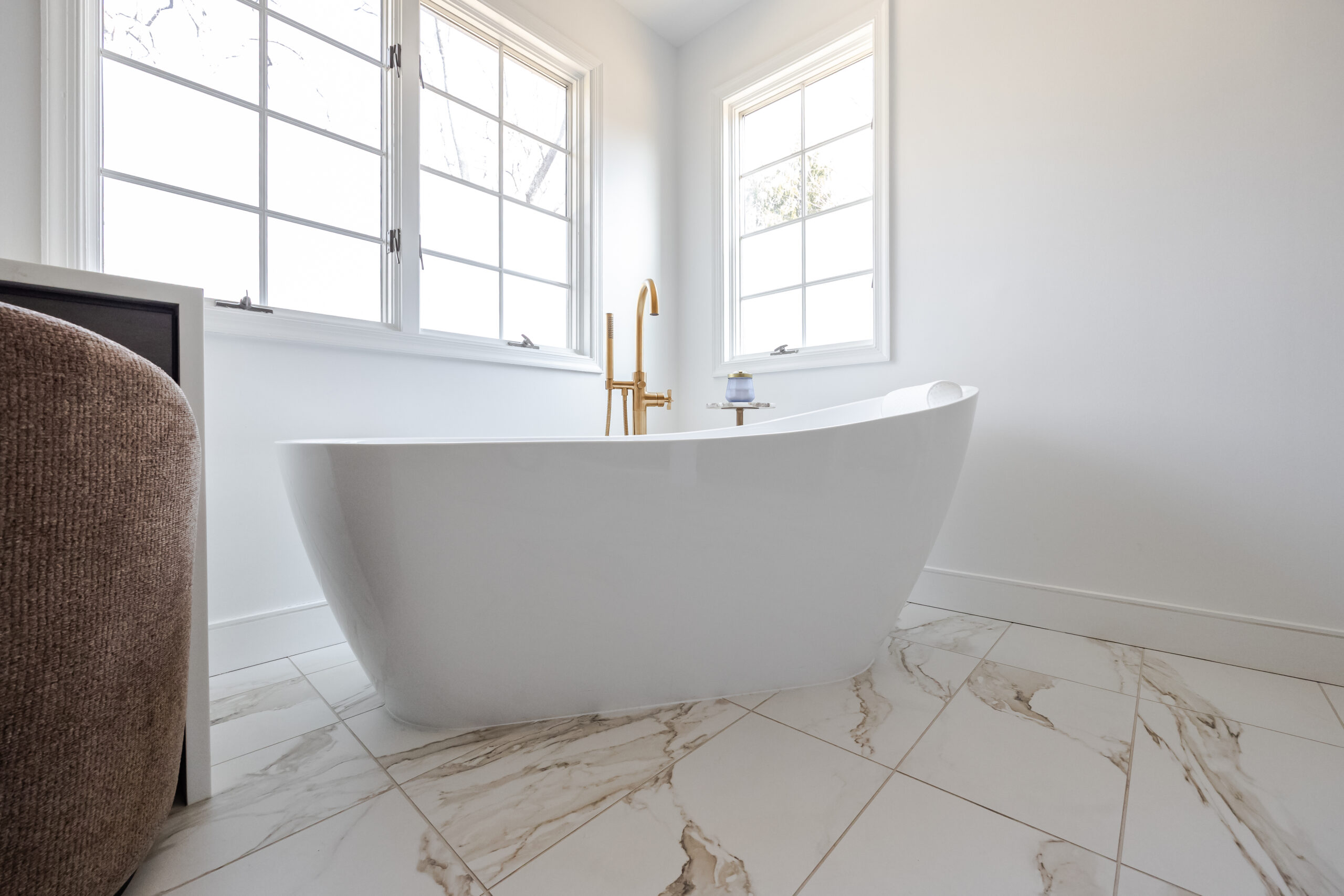 One bathroom is a treat, but two is a total transformation. We tackled both the primary suite and the hall bath to ensure every corner of the home felt equally elevated. In the primary space, we focused on high end flow by installing a seamless curbless shower and a stunning freestanding tub for the ultimate escape. Not to be outshone, the hall bathroom received a complete refresh with a crisp new shower and modern fixtures. From the custom vanities to the strategic new lighting, these spaces were reimagined to turn a daily routine into a luxury experience.