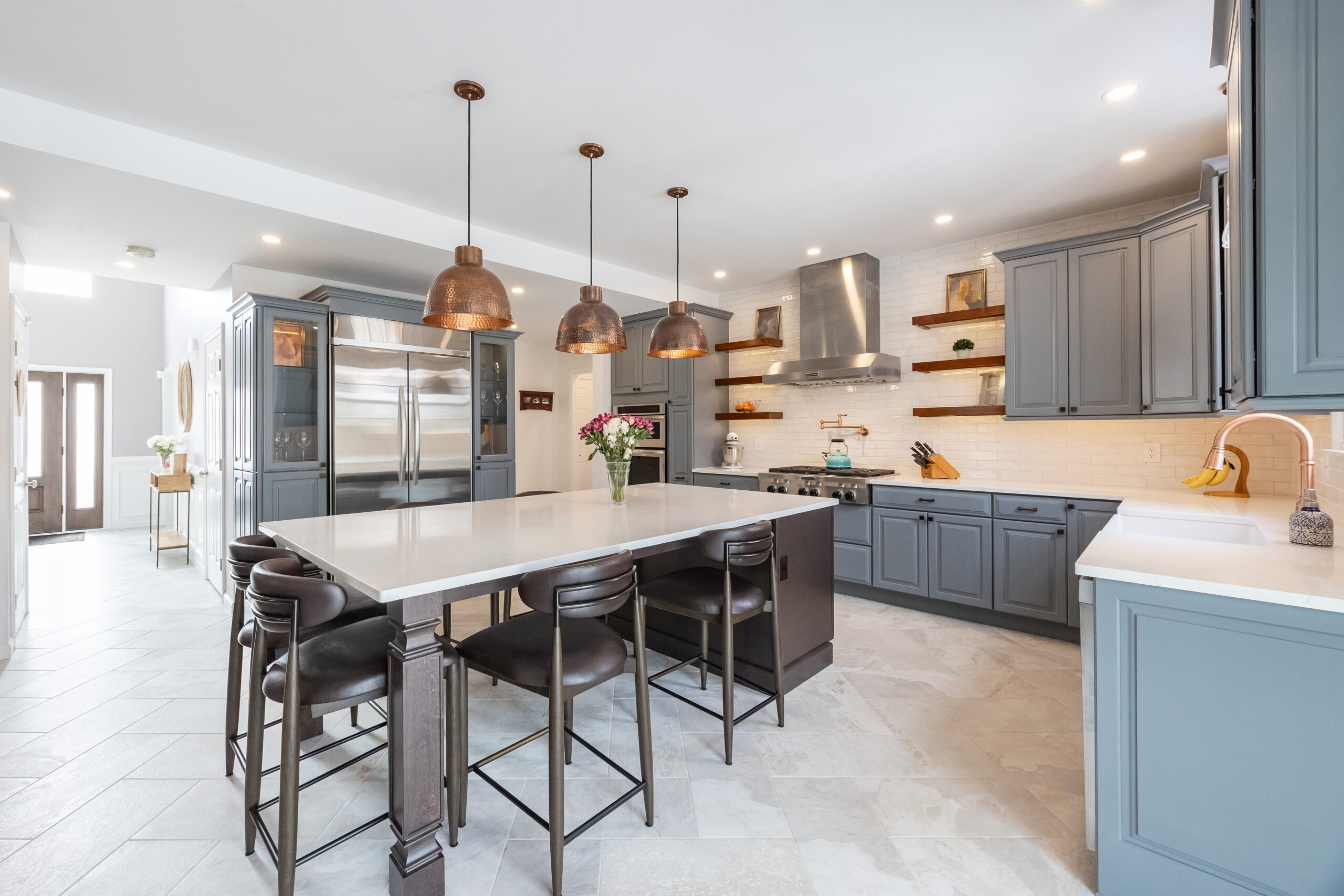 • A Kitchen with Main Character Energy: We completely reimagined the space with sleek painted cabinets and a brand-new island that’s basically a magnet for appetizers and good conversation.